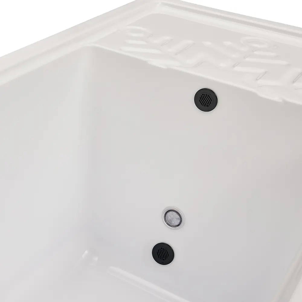 Купель оснащена удобной системой управления и внешним дисплеем, который отображает актуальную температуру, позволяя точно контролировать процесс закаливания. Три встроенные форсунки обеспечивают циркуляцию воды и легкий гидромассажный эффект, а LED‑подсветка добавляет визуальной эстетики, создавая приятную атмосферу в вечернее время.