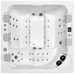 Artesian Spas 848L Deluxe Class – весьма просторный гидромассажный бассейн, в котором могут разместиться до шести взрослых человек. Американские специалисты продумали все до мелочей, чтобы каждый испытывал максимум удовольствия от водных процедур. Модель оборудована лежачим местом. Общее количество форсунок составляет 48, благодаря чему эффект от гидромассажа будет просто великолепный.