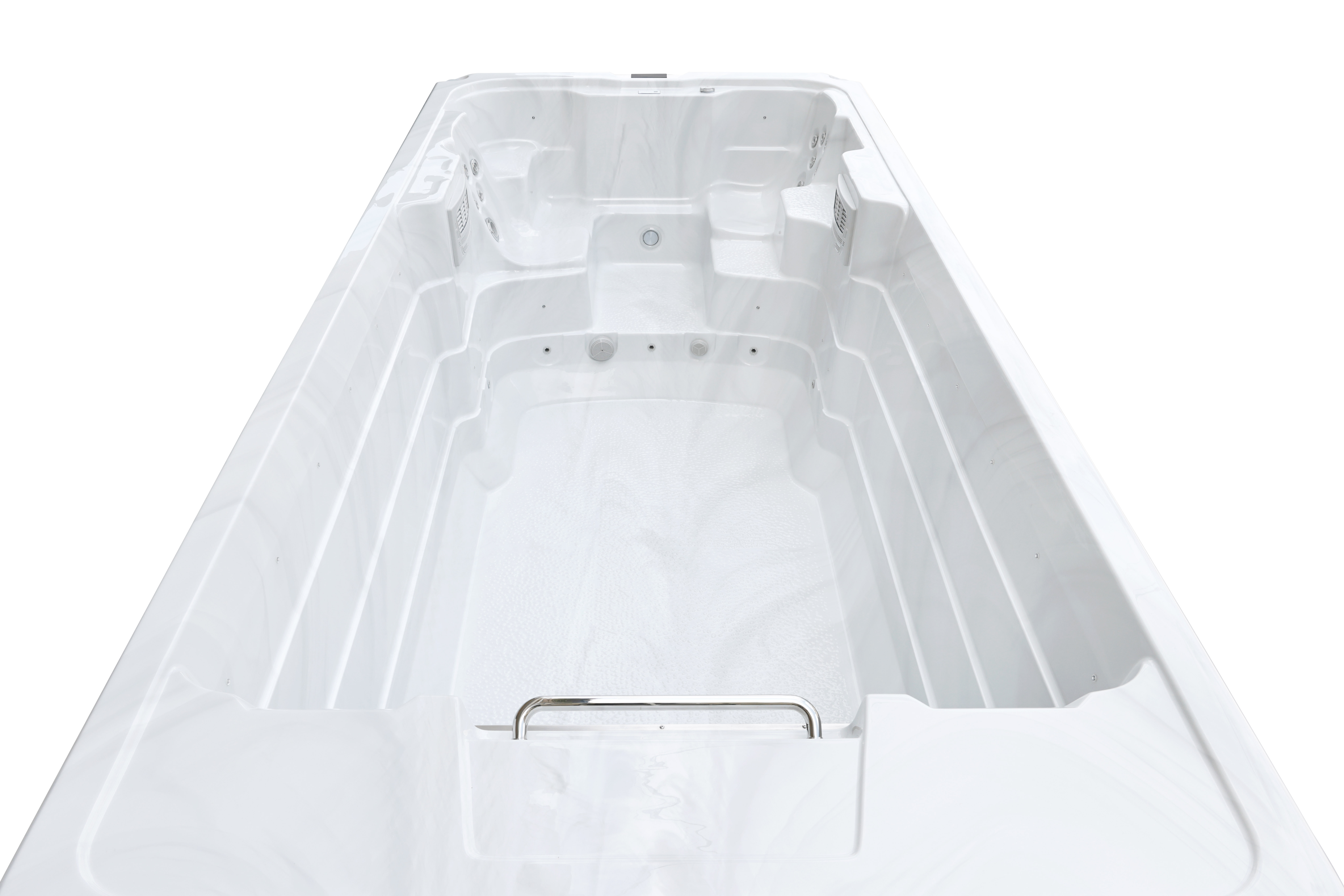 Helsinki Turbo оснащен высокопроизводительным пропеллерным насосом мощностью 6,5 кВт с 16 скоростными режимами, который создает мощный равномерный поток для комфортного плавания на месте. Дополнительный насос 1,5 кВт обеспечивает работу 18 массажных форсунок для эффективного восстановления после тренировок.