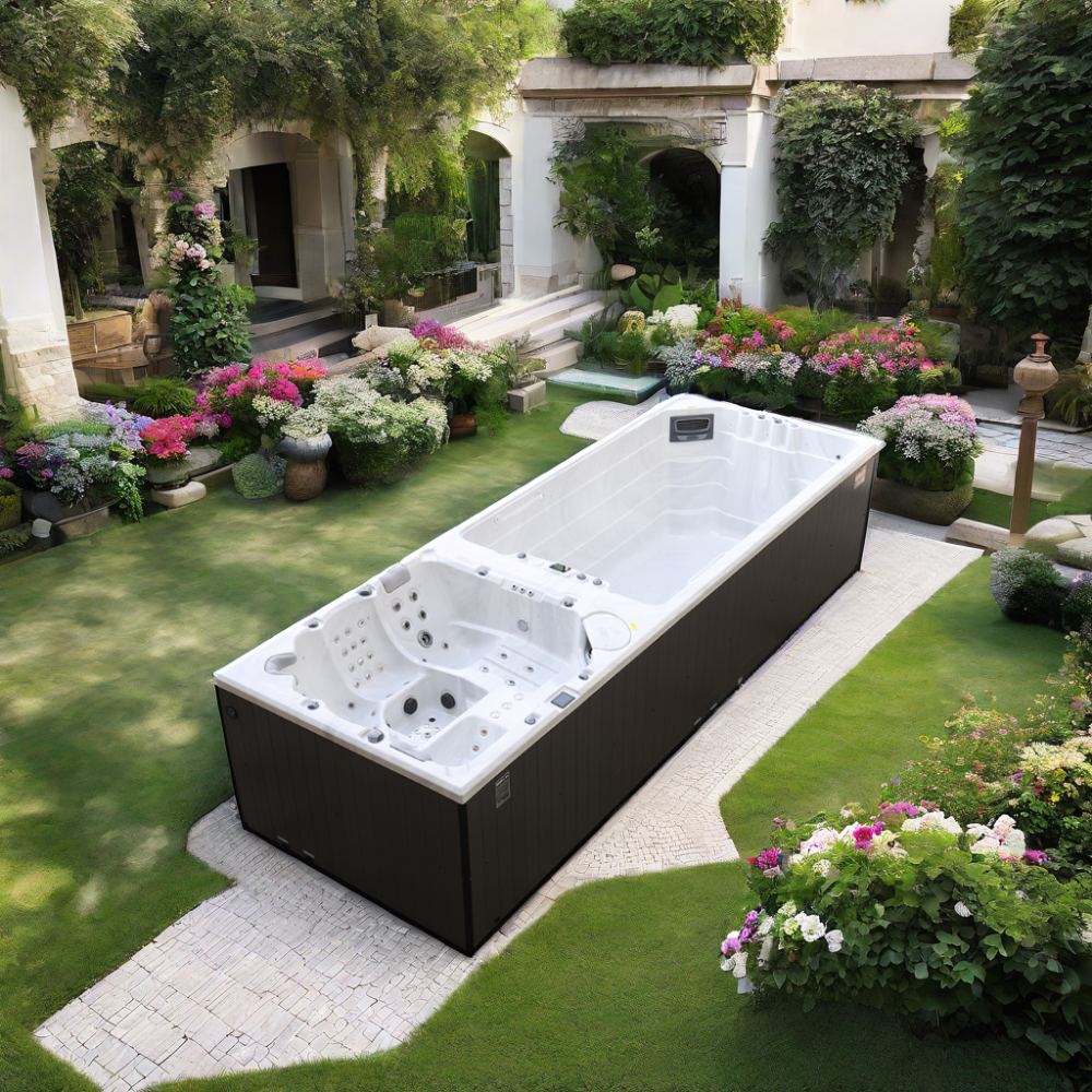 Kroford устанавливает новые стандарты с впечатляющими размерами 6,37 x 2,25 м и глубиной 147 см. Просторная чаша обеспечивает высокий уровень комфорта для одновременного отдыха большой компании и создания идеальных условий для релаксации и плавания.
